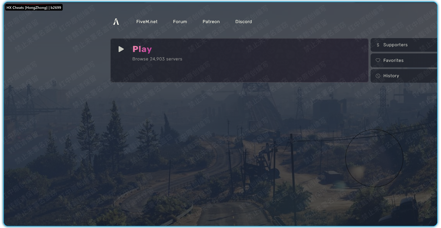 **在**<mark style="color:blue;">**`FiveM私服平台`**</mark>**自动呼出菜单时即代表注入成功.然后你可以加入你的服务器游玩\~**