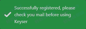 <figure><img src="https://1382592200-files.gitbook.io/~/files/v0/b/gitbook-x-prod.appspot.com/o/spaces%2F7YXEHggLzaiKwZjRSOD4%2Fuploads%2FEgtskbAFDEa5mZ0Q7eWI%2FKeyser%E6%B3%A8%E5%86%8C%E6%88%90%E5%8A%9F%E6%8F%90%E7%A4%BA.png?alt=media&#x26;token=af836d32-38a4-42b1-9042-d9ed5f235cc9" alt=""><figcaption></figcaption></figure>