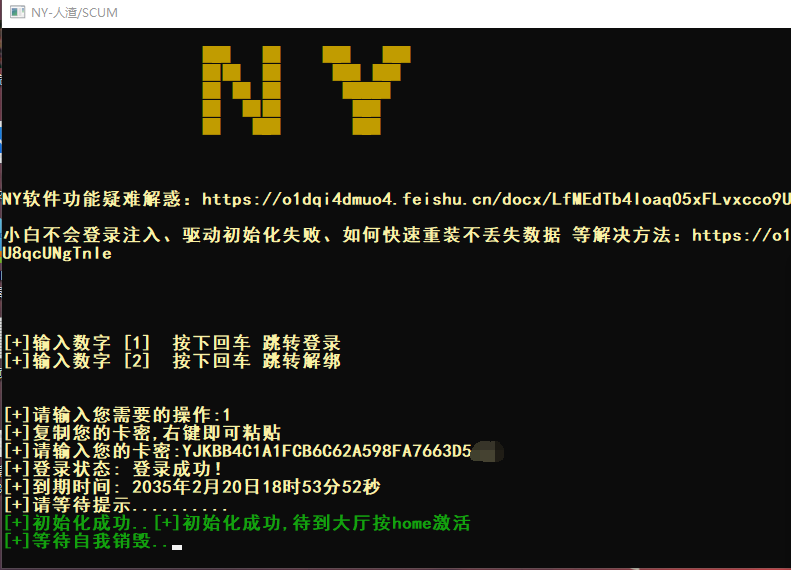**如上图,当你**<mark style="color:blue;">**`复制粘贴好了激活码`**</mark>**进去后,然后**<mark style="color:blue;">**`按下回车`**</mark>**就会出现下图内容,**<mark style="color:blue;">**`等待黑框自动消失后`**</mark>**,你才可以进入游戏**